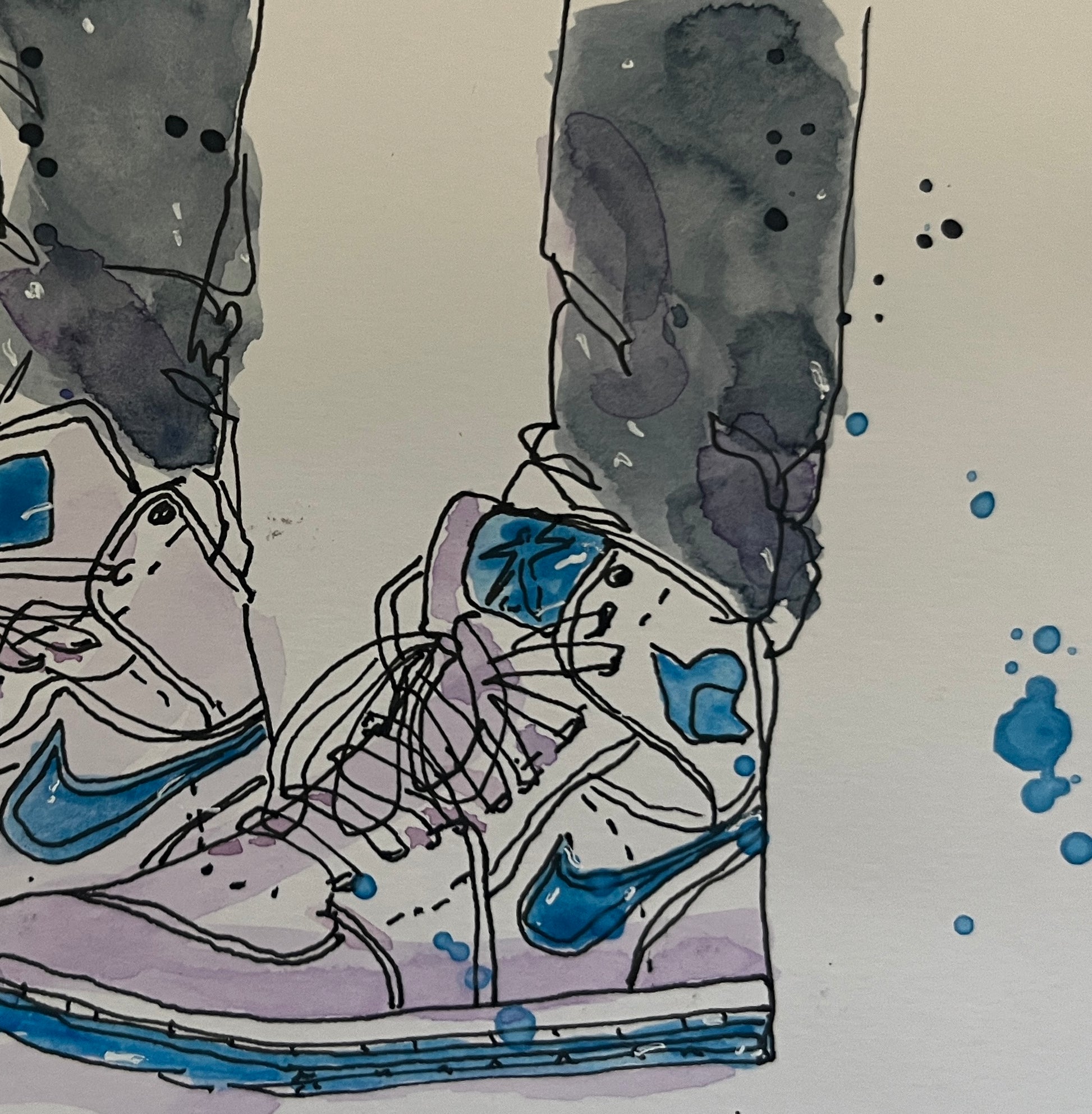 One of my all time favorite things to paint are shoes. Love these Nikes. The splatters and the shape of the shoes have a story to tell. 5 x 8 original watercolor on watercolor paper, unframed.